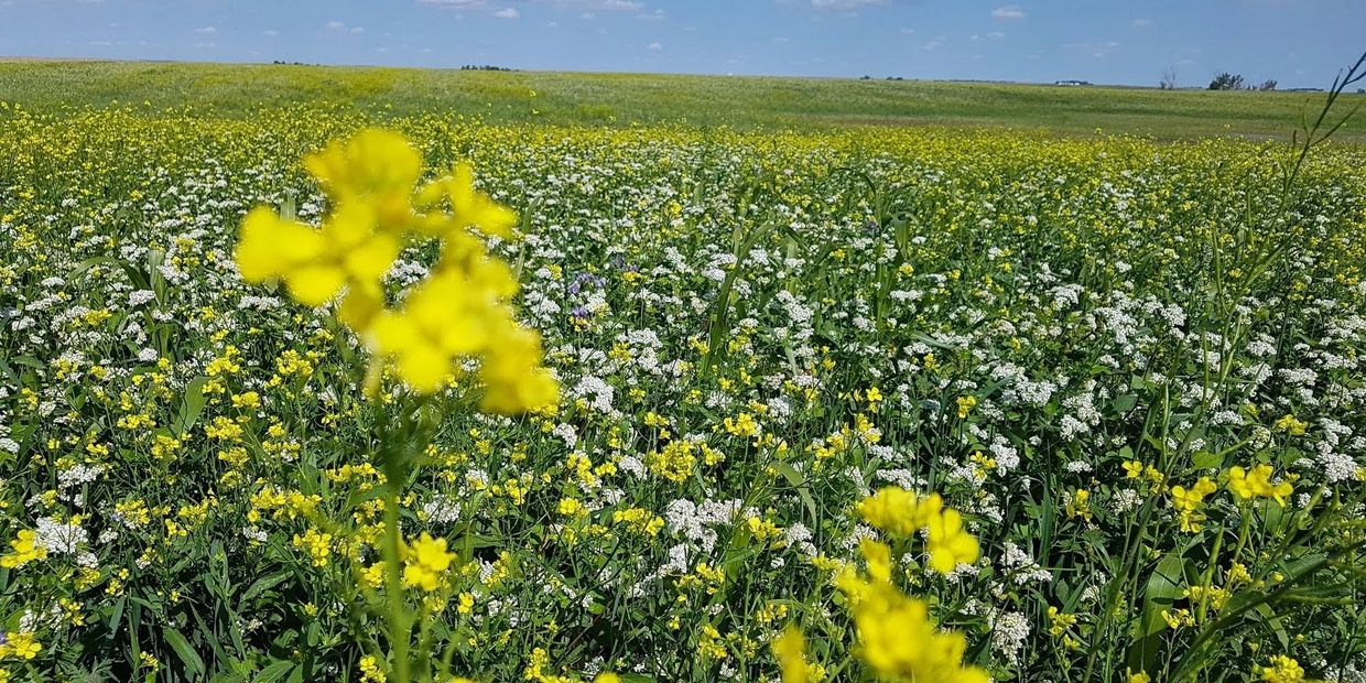 We select a multispecies cover crop with the goal of reducing crop pests, promoting biodiversity, increasing soil organic matter, building an environment for beneficial organisms, and cycling nutrients back into our soil.